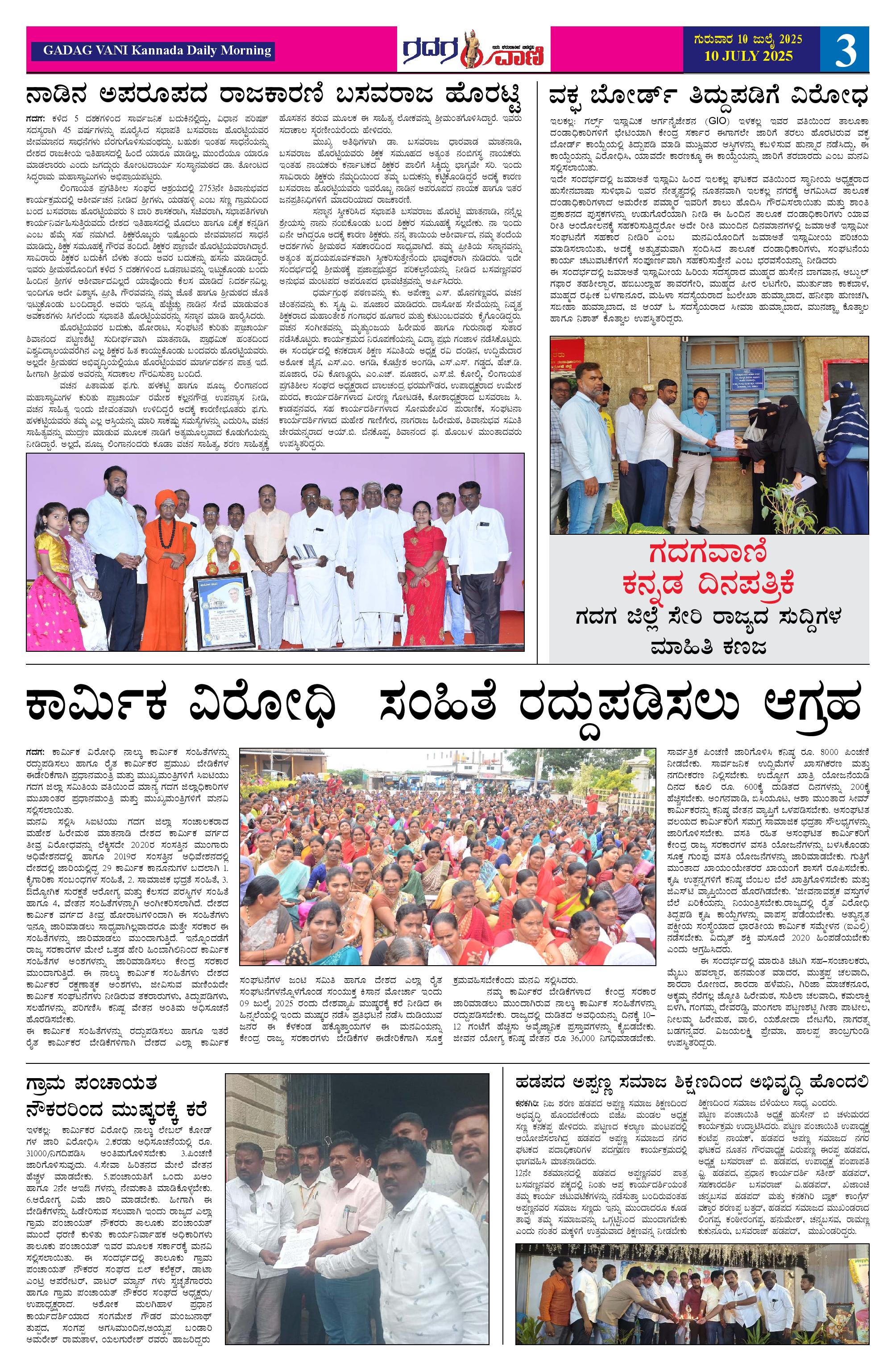 10 July 2025 ಗದಗವಾಣಿ Page: 3 July 10, 2025 << First << 3 >> Last >> Page 1Page 2Page 3Page 4Page 5Page 6 × 10 July 2025 ಗದಗವಾಣಿ 1234510.07.2025 GADAGVANI PG 06 NEW-page-006 << First << 3 >> Last >> 1234510.07.2025 GADAGVANI PG 06 NEW-page-006 3