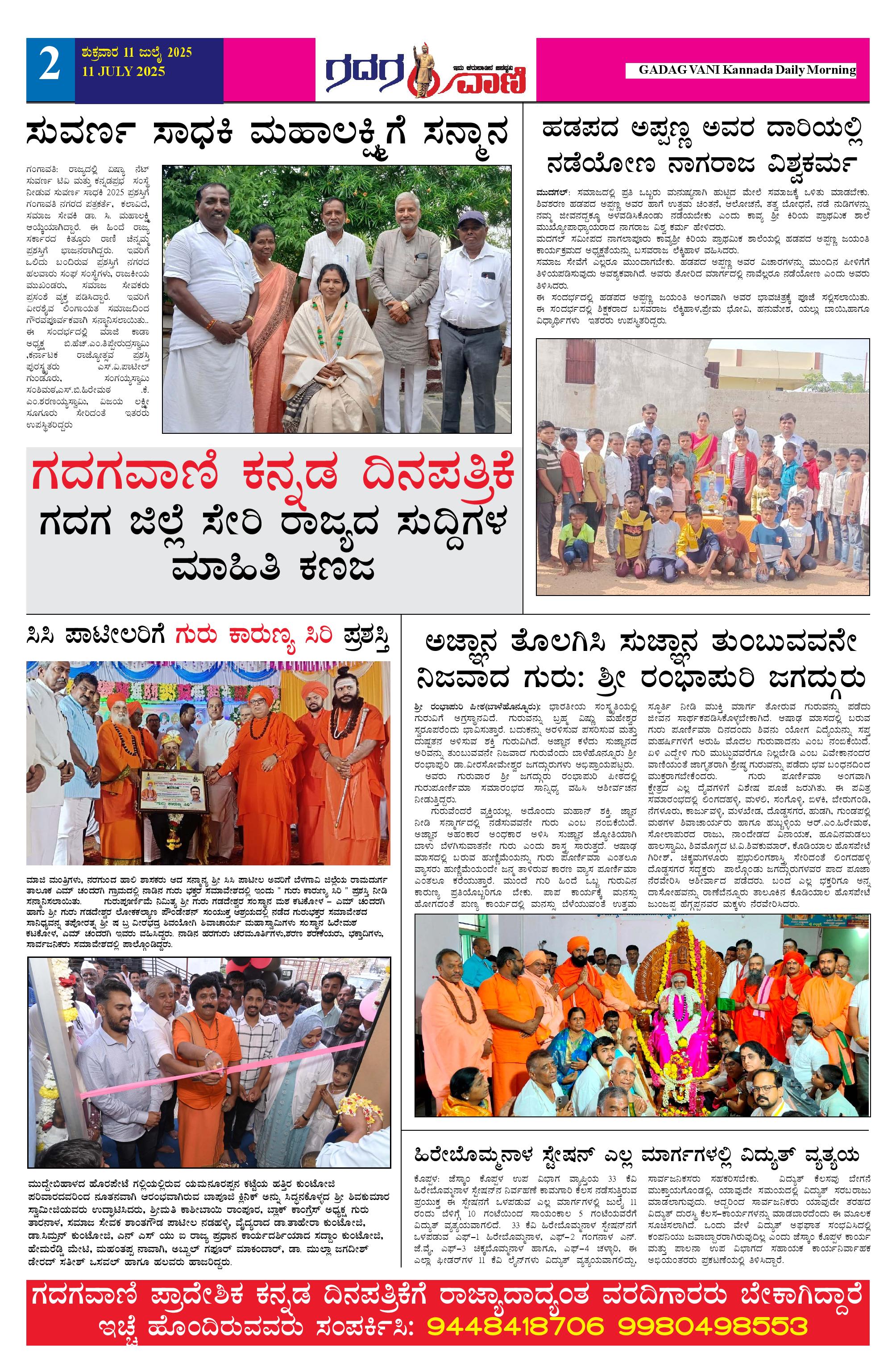 11 July 2025 ಗದಗವಾಣಿ Page: 2 July 11, 2025 << First << 2 >> Last >> Page 1Page 2Page 3Page 4Page 5Page 6 × 11 July 2025 ಗದಗವಾಣಿ 1234511.07.2025 GADAGVANI PG 06 NEW-page-006 << First << 2 >> Last >> 1234511.07.2025 GADAGVANI PG 06 NEW-page-006 2