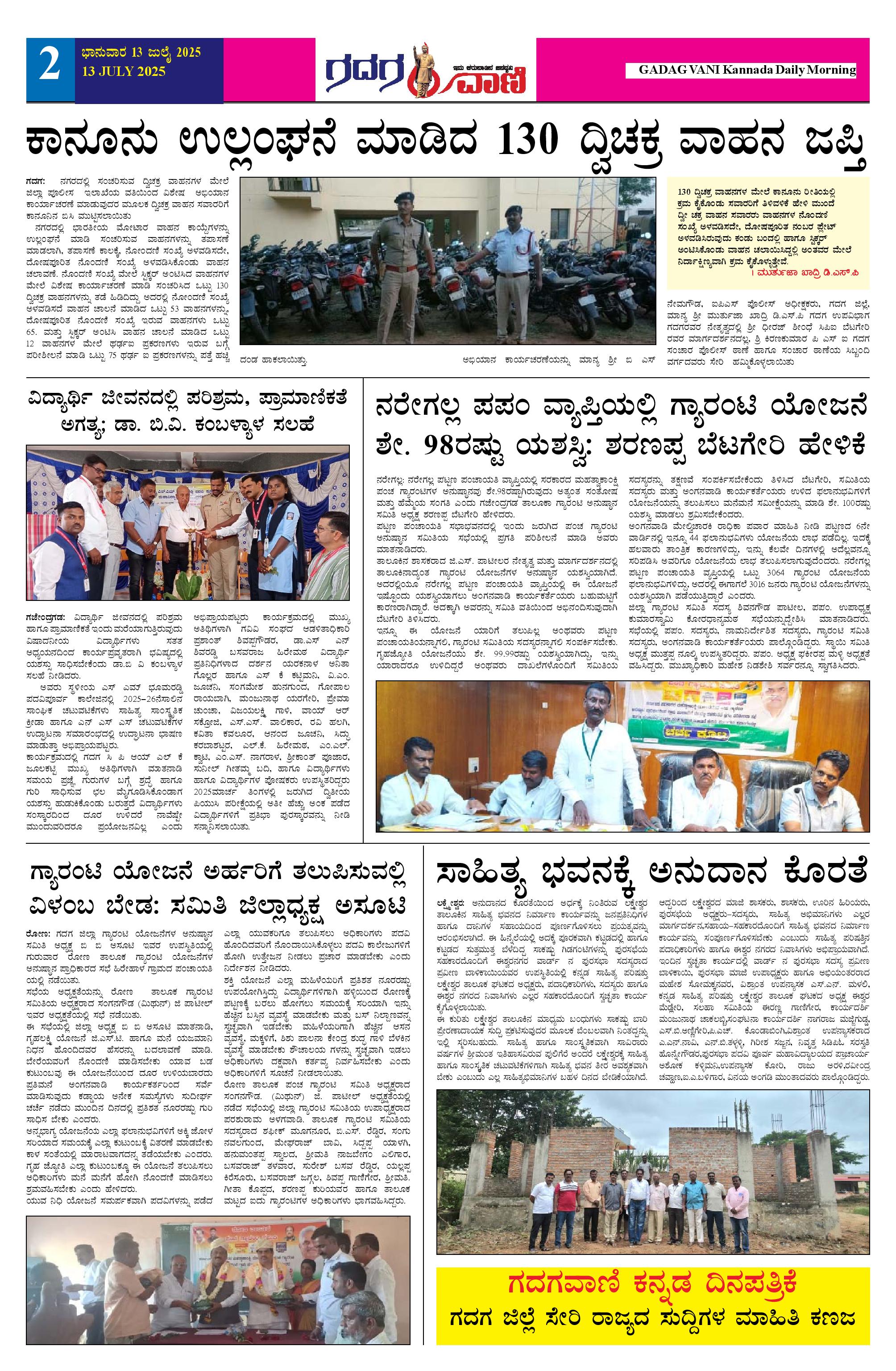 13 July 2025 ಗದಗವಾಣಿ Page: 2 July 13, 2025 << First << 2 >> Last >> Page 1Page 2Page 3Page 4Page 5Page 6 × 13 July 2025 ಗದಗವಾಣಿ 1234513.07.2025 GADAGVANI PG 06 NEW-page-006 << First << 2 >> Last >> 1234513.07.2025 GADAGVANI PG 06 NEW-page-006 2