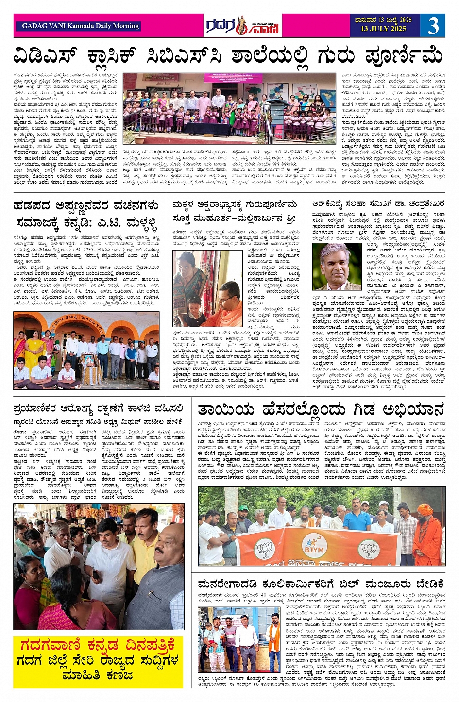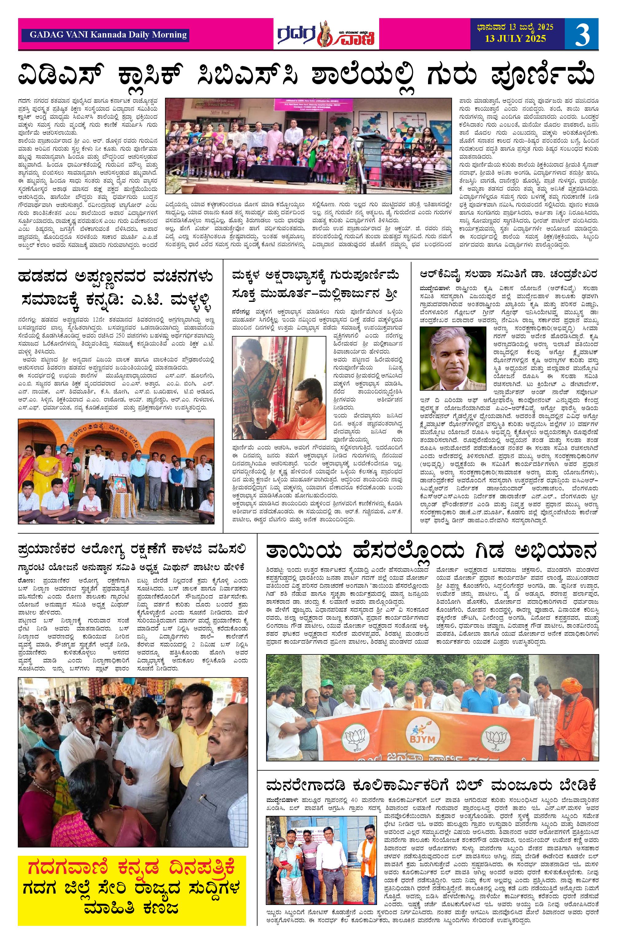 13 July 2025 ಗದಗವಾಣಿ Page: 3 July 13, 2025 << First << 3 >> Last >> Page 1Page 2Page 3Page 4Page 5Page 6 × 13 July 2025 ಗದಗವಾಣಿ 1234513.07.2025 GADAGVANI PG 06 NEW-page-006 << First << 3 >> Last >> 1234513.07.2025 GADAGVANI PG 06 NEW-page-006 3
