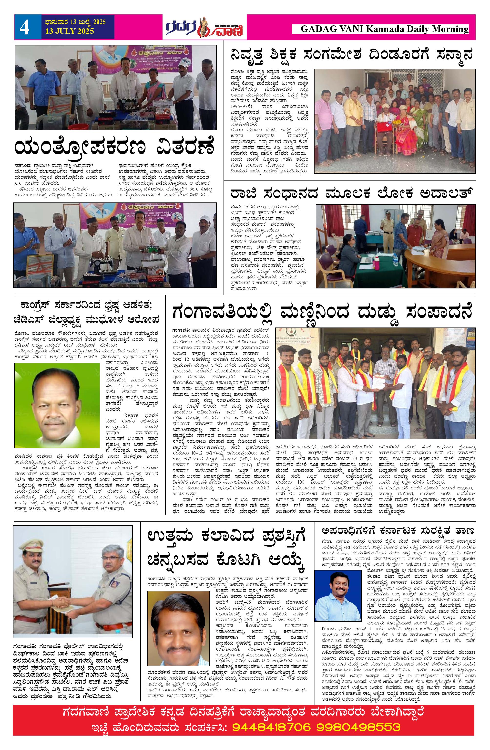13 July 2025 ಗದಗವಾಣಿ Page: 4 July 13, 2025 << First << 4 >> Last >> Page 1Page 2Page 3Page 4Page 5Page 6 × 13 July 2025 ಗದಗವಾಣಿ 1234513.07.2025 GADAGVANI PG 06 NEW-page-006 << First << 4 >> Last >> 1234513.07.2025 GADAGVANI PG 06 NEW-page-006 4