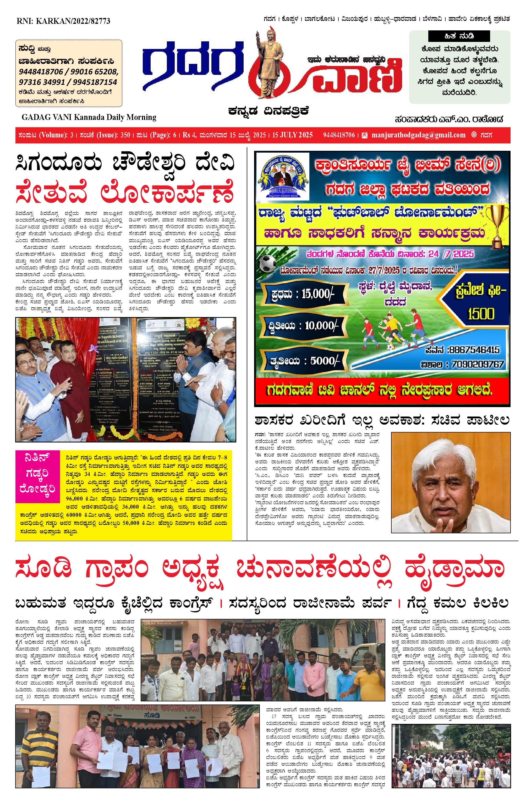 15 July 2025 ಗದಗವಾಣಿ July 15, 2025 << First << 1 >> Last >> Page 1Page 2Page 3Page 4Page 5Page 6 × 15 July 2025 ಗದಗವಾಣಿ page-1page-2page-3page-4page-5page-6 << First << 1 >> Last >> page-1page-2page-3page-4page-5page-6 page-1