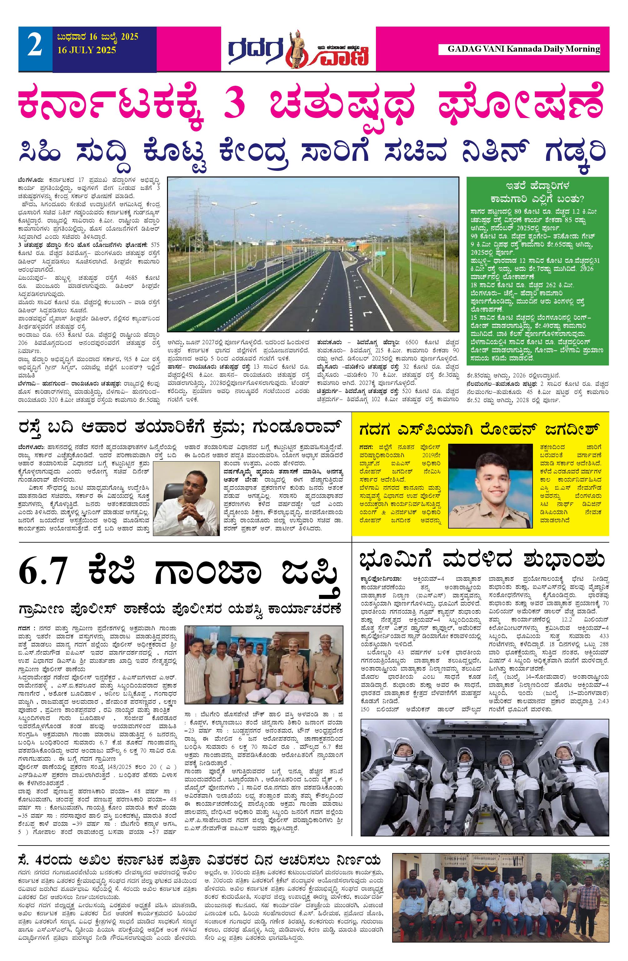 16 July 2025 ಗದಗವಾಣಿ Page: 2 July 16, 2025 << First << 2 >> Last >> Page 1Page 2Page 3Page 4Page 5Page 6 × 16 July 2025 ಗದಗವಾಣಿ 1234516.07.2025 GADAGVANI PG 06 NEW FINAL 1-page-006 << First << 2 >> Last >> 1234516.07.2025 GADAGVANI PG 06 NEW FINAL 1-page-006 2