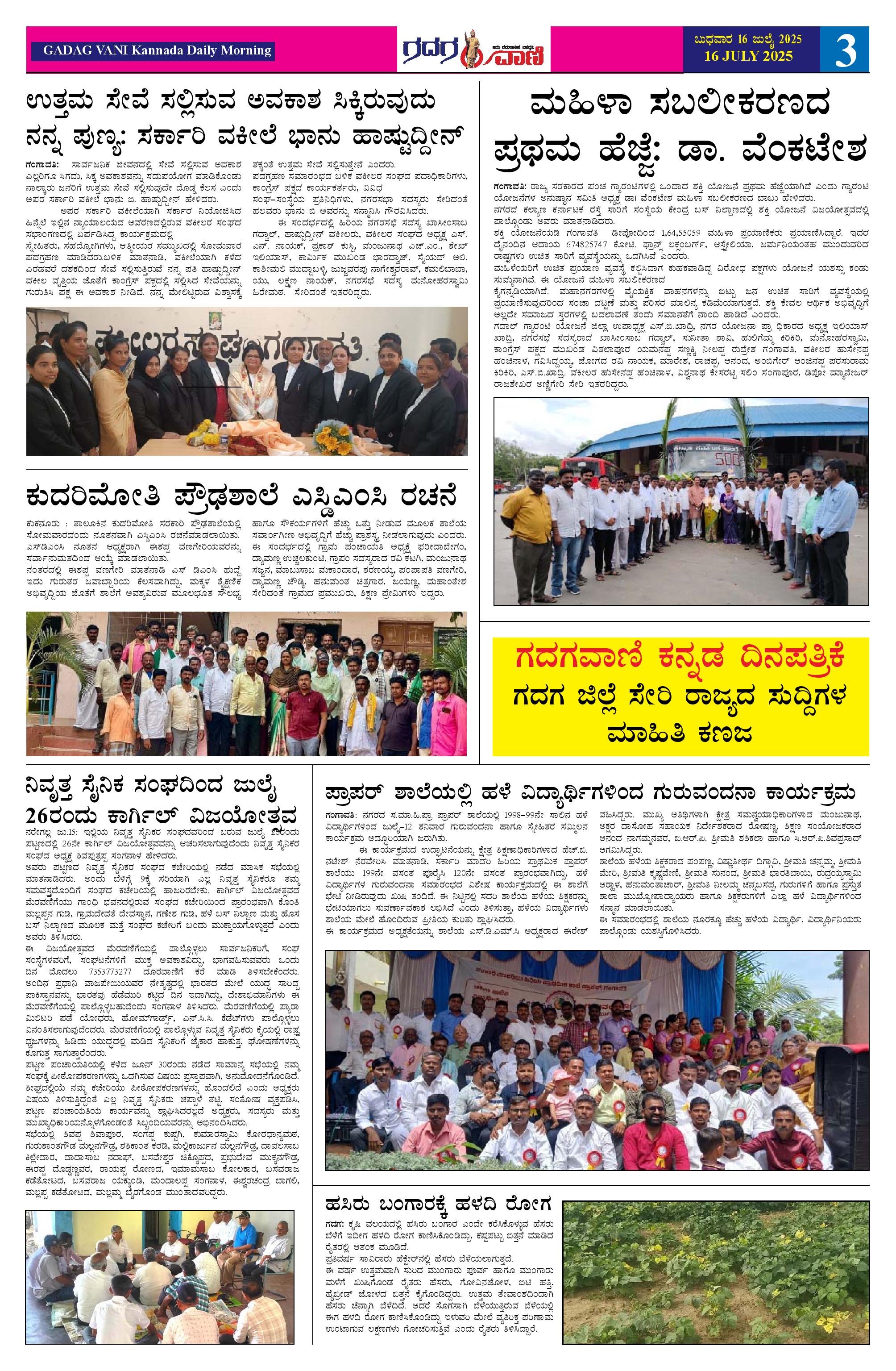 16 July 2025 ಗದಗವಾಣಿ Page: 3 July 16, 2025 << First << 3 >> Last >> Page 1Page 2Page 3Page 4Page 5Page 6 × 16 July 2025 ಗದಗವಾಣಿ 1234516.07.2025 GADAGVANI PG 06 NEW FINAL 1-page-006 << First << 3 >> Last >> 1234516.07.2025 GADAGVANI PG 06 NEW FINAL 1-page-006 3