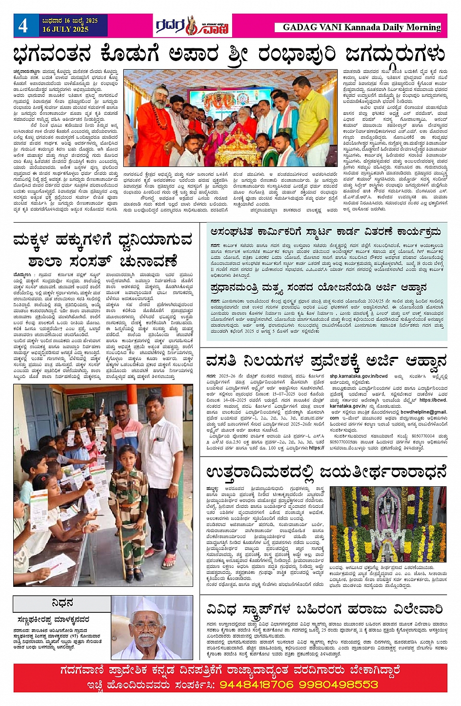 16 July 2025 ಗದಗವಾಣಿ Page: 4 July 16, 2025 << First << 4 >> Last >> Page 1Page 2Page 3Page 4Page 5Page 6 × 16 July 2025 ಗದಗವಾಣಿ 1234516.07.2025 GADAGVANI PG 06 NEW FINAL 1-page-006 << First << 4 >> Last >> 1234516.07.2025 GADAGVANI PG 06 NEW FINAL 1-page-006 4