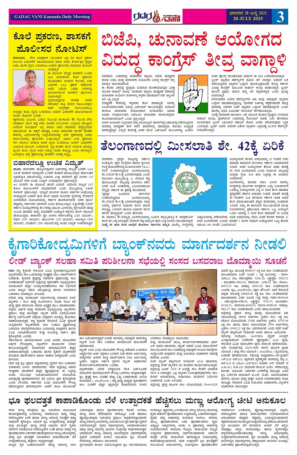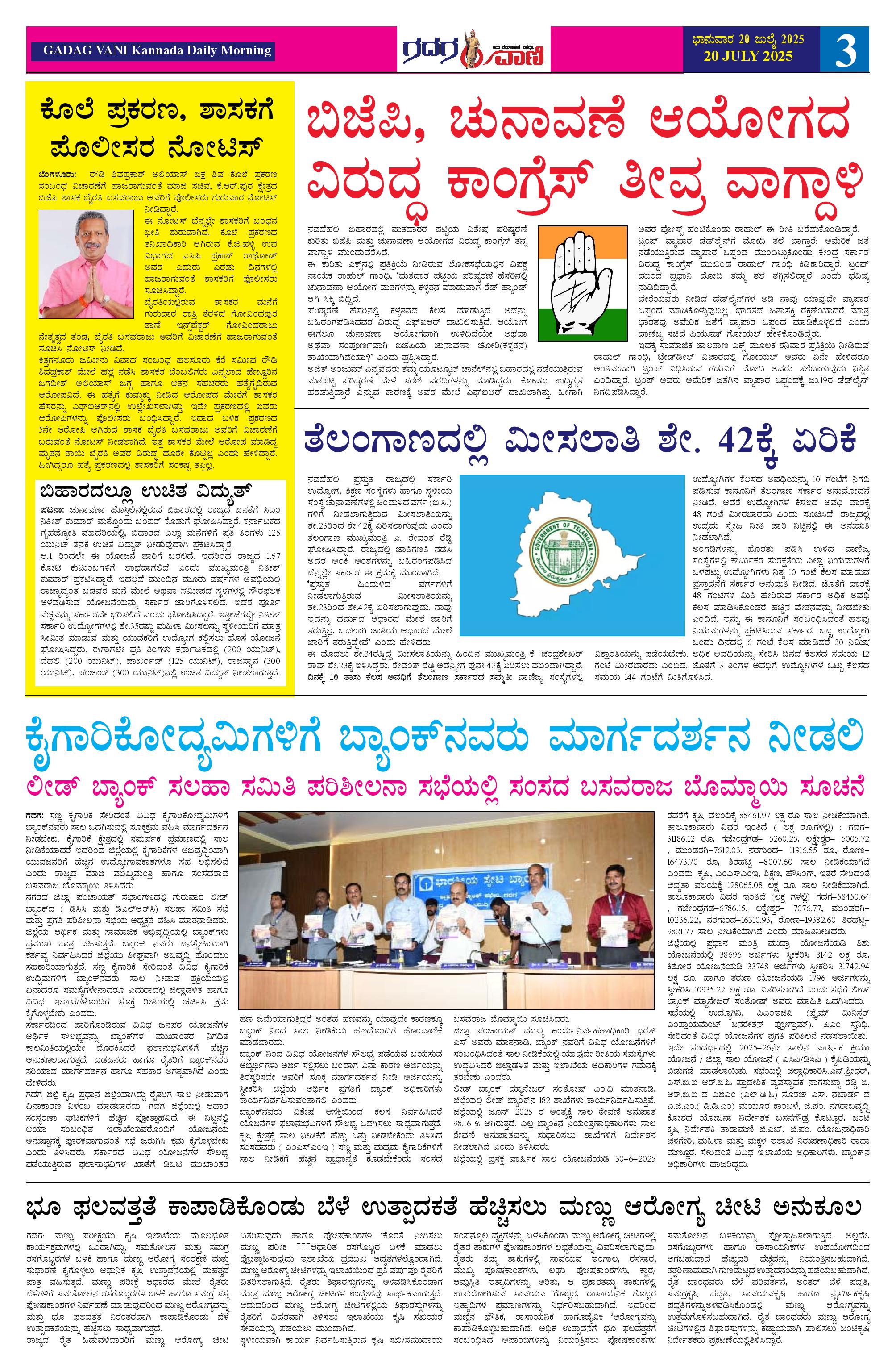 20 July 2025 ಗದಗವಾಣಿ Page: 3 July 20, 2025 << First << 3 >> Last >> Page 1Page 2Page 3Page 4Page 5Page 6 × 20 July 2025 ಗದಗವಾಣಿ page-1page-2page-3page-4page-5page-6 << First << 3 >> Last >> page-1page-2page-3page-4page-5page-6 page-3
