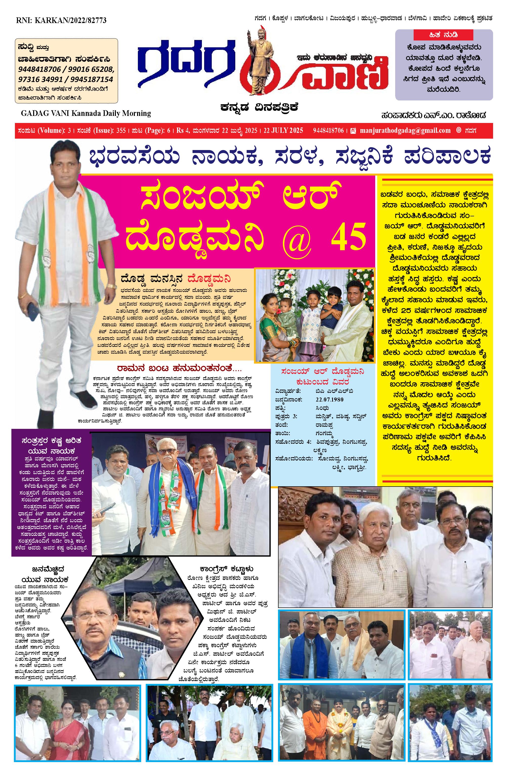 22 July 2025 ಗದಗವಾಣಿ