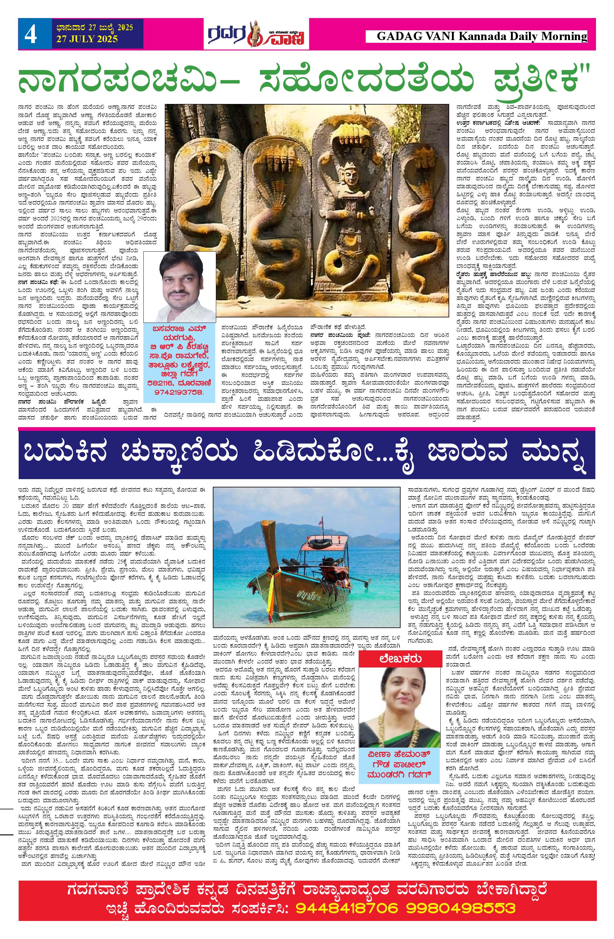 27 July 2025 ಗದಗವಾಣಿ Page: 4 July 27, 2025 << First << 4 >> Last >> Page 1Page 2Page 3Page 4Page 5Page 6 × 27 July 2025 ಗದಗವಾಣಿ page-1page-2page-3page-4page-5page-6 << First << 4 >> Last >> page-1page-2page-3page-4page-5page-6 page-4