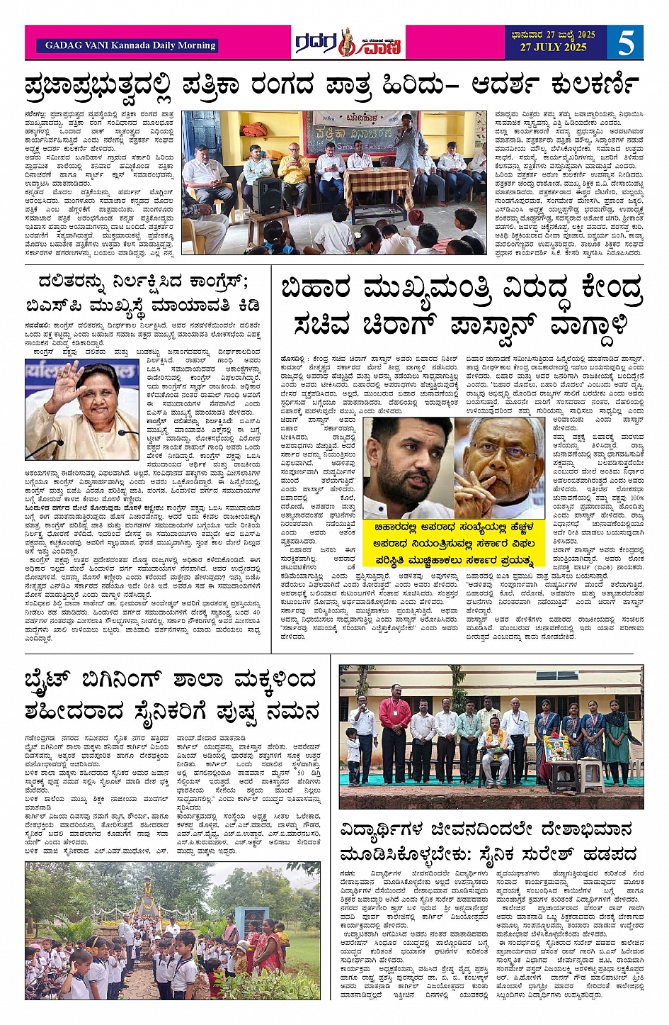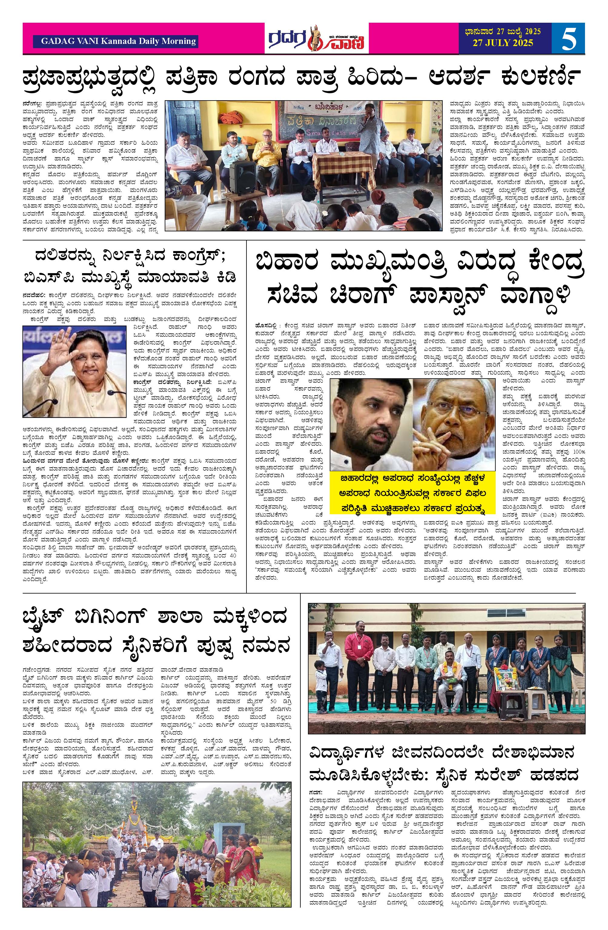 27 July 2025 ಗದಗವಾಣಿ Page: 5 July 27, 2025 << First << 5 >> Last >> Page 1Page 2Page 3Page 4Page 5Page 6 × 27 July 2025 ಗದಗವಾಣಿ page-1page-2page-3page-4page-5page-6 << First << 5 >> Last >> page-1page-2page-3page-4page-5page-6 page-5