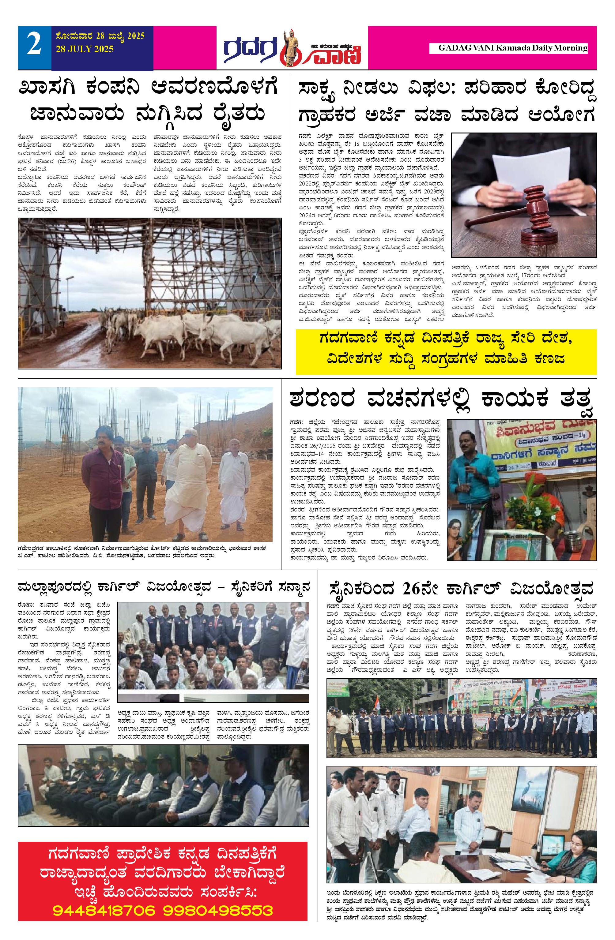 28 July 2025 ಗದಗವಾಣಿ Page: 2 July 28, 2025 << First << 2 >> Last >> Page 1Page 2Page 3Page 4 × 28 July 2025 ಗದಗವಾಣಿ page-1page-2page-3page-4 << First << 2 >> Last >> page-1page-2page-3page-4 page-2