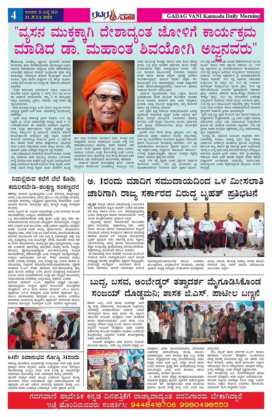 31 July 2025 ಗದಗವಾಣಿ Page: 4 July 31, 2025 << First << 4 >> Last >> Page 1Page 2Page 3Page 4Page 5Page 6 × 31 July 2025 ಗದಗವಾಣಿ 1234531.07.2025 GADAGVANI PG 06 NEW-page-006 << First << 4 >> Last >> 1234531.07.2025 GADAGVANI PG 06 NEW-page-006 4