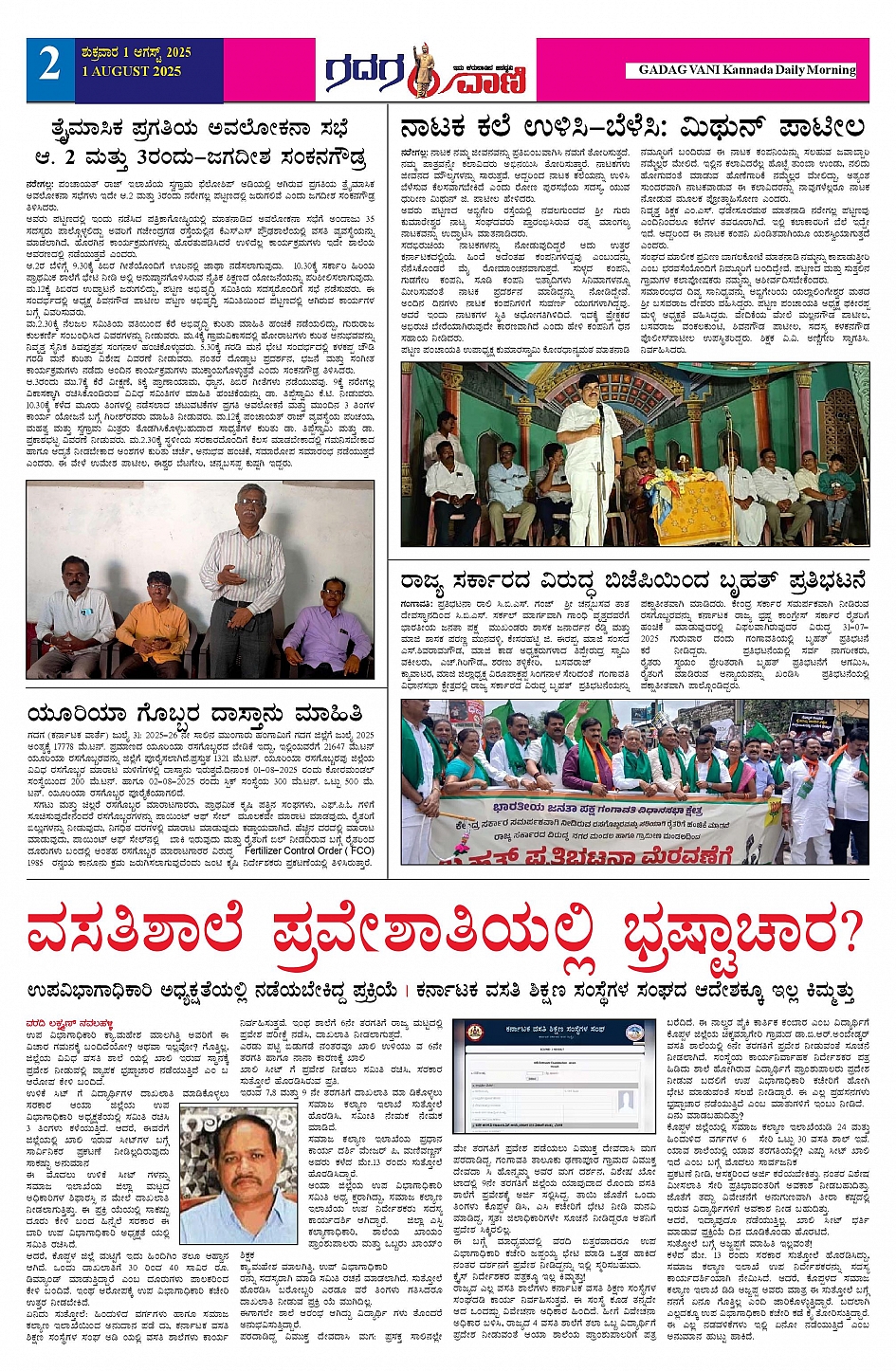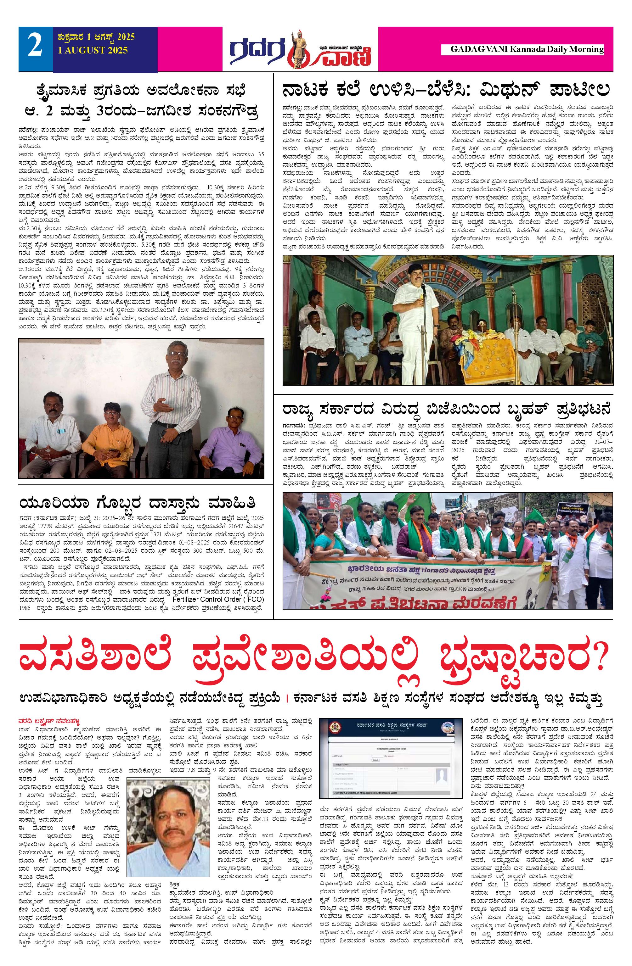 01 AUG 2025 ಗದಗವಾಣಿ Page: 2 August 01, 2025 << First << 2 >> Last >> Page 1Page 2Page 3Page 4Page 5Page 6 × 01 AUG 2025 ಗದಗವಾಣಿ 1234501.08.2025 GADAGVANI PG 06 NEW-page-006 << First << 2 >> Last >> 1234501.08.2025 GADAGVANI PG 06 NEW-page-006 2