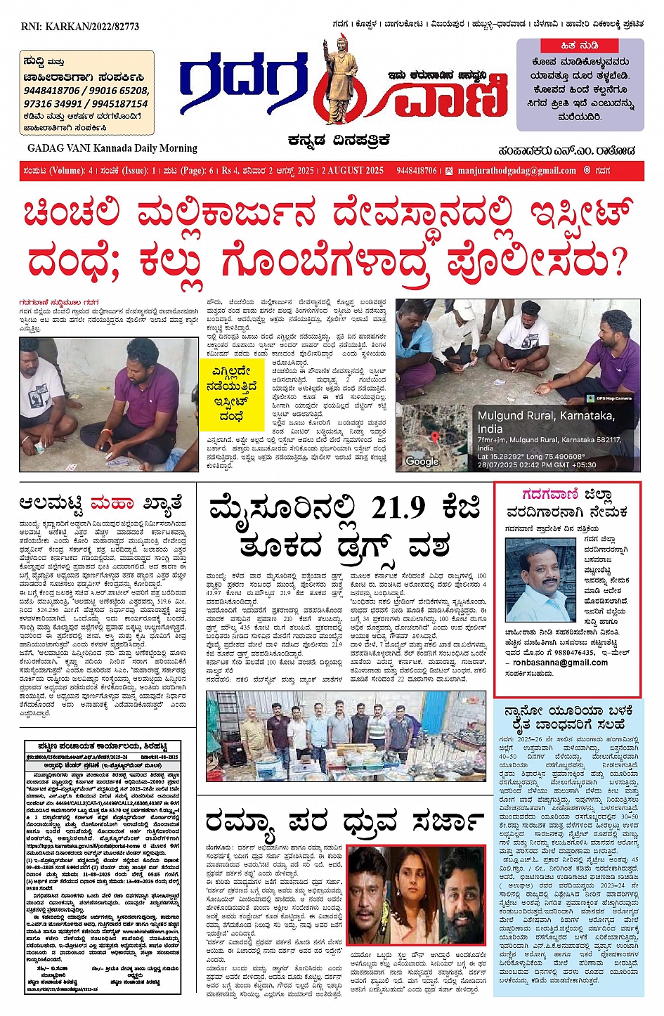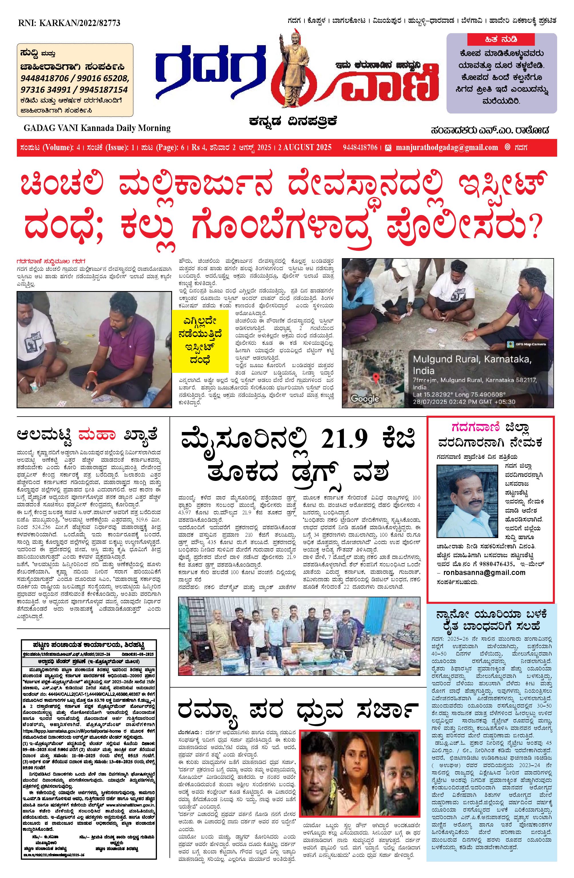 02 AUG 2025 ಗದಗವಾಣಿ August 02, 2025 << First << 1 >> Last >> Page 1Page 2Page 3Page 4Page 5Page 6 × 02 AUG 2025 ಗದಗವಾಣಿ 1234502.08.2025 GADAGVANI PG 06 NEW-page-006 << First << 1 >> Last >> 1234502.08.2025 GADAGVANI PG 06 NEW-page-006 1