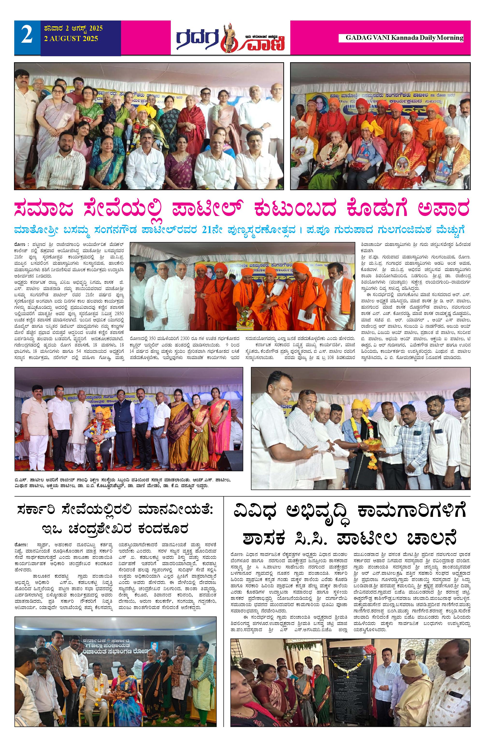 02 AUG 2025 ಗದಗವಾಣಿ Page: 2 August 02, 2025 << First << 2 >> Last >> Page 1Page 2Page 3Page 4Page 5Page 6 × 02 AUG 2025 ಗದಗವಾಣಿ 1234502.08.2025 GADAGVANI PG 06 NEW-page-006 << First << 2 >> Last >> 1234502.08.2025 GADAGVANI PG 06 NEW-page-006 2