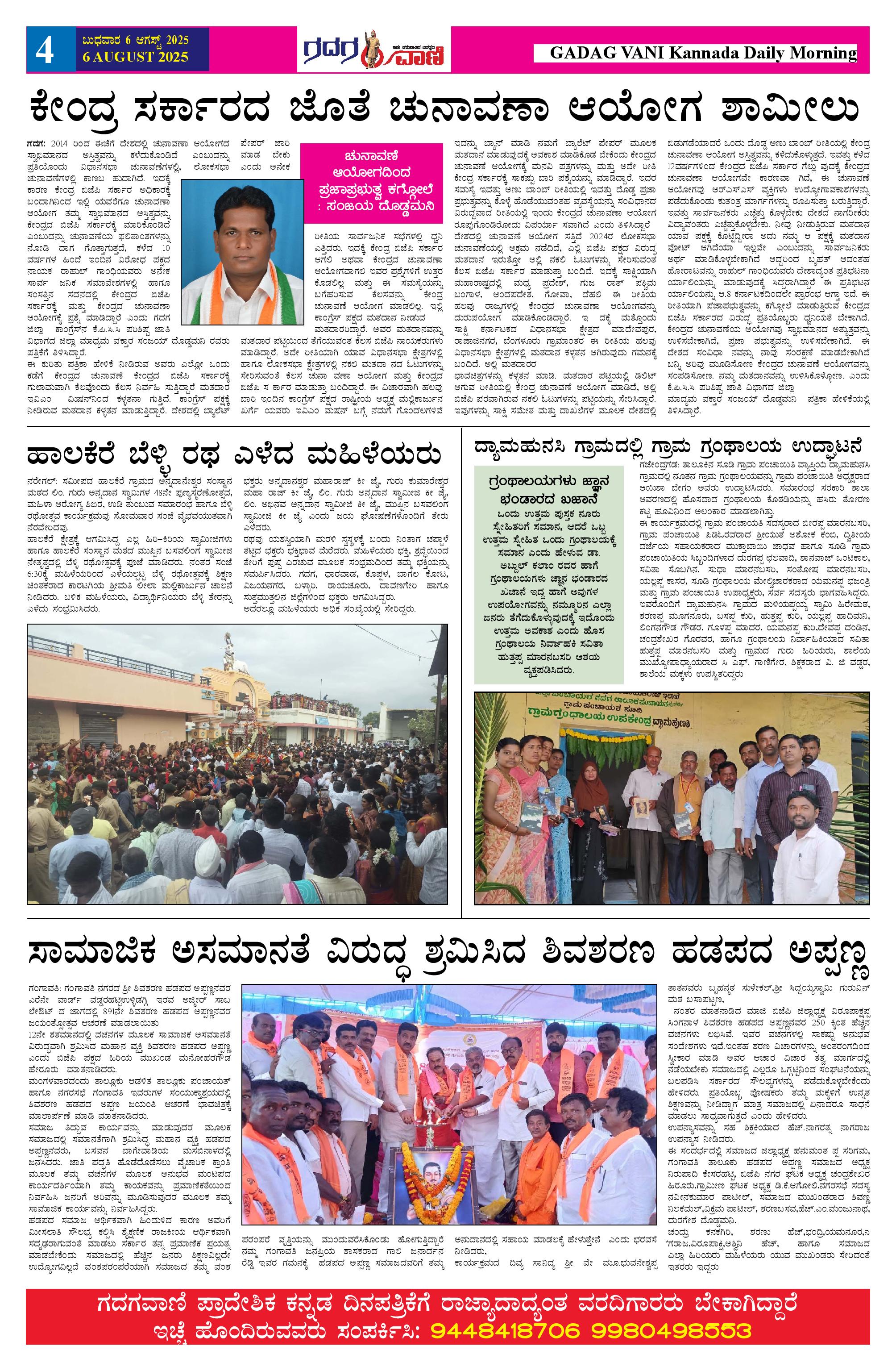 06 AUG 2025 ಗದಗವಾಣಿ Page: 4 August 06, 2025 << First << 4 >> Last >> Page 1Page 2Page 3Page 4Page 5Page 6 × 06 AUG 2025 ಗದಗವಾಣಿ 1234506.08.2025 GADAGVANI PG 06 NEW-page-006 << First << 4 >> Last >> 1234506.08.2025 GADAGVANI PG 06 NEW-page-006 4