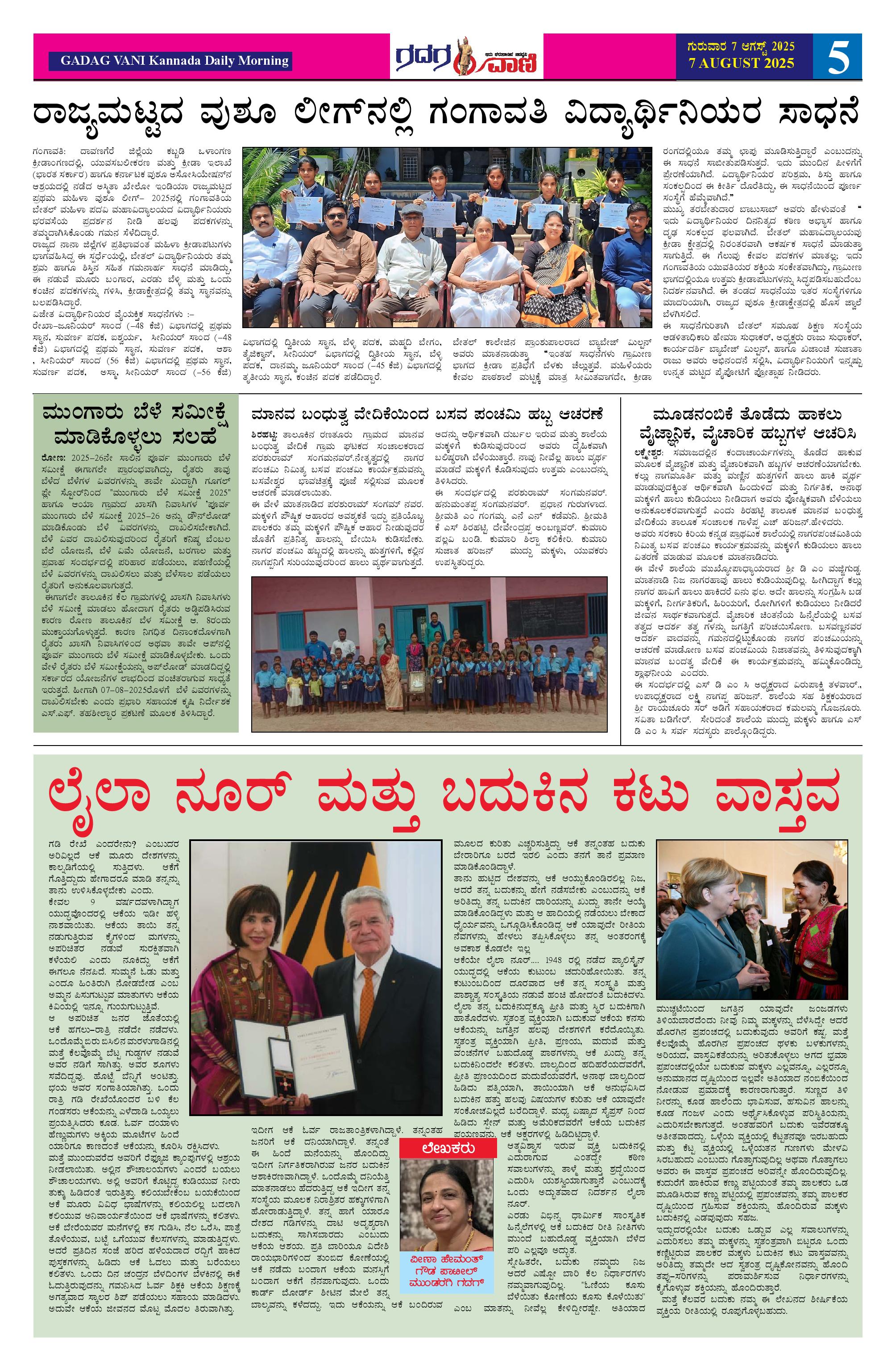 07 AUG 2025 ಗದಗವಾಣಿ Page: 5 August 07, 2025 << First << 5 >> Last >> Page 1Page 2Page 3Page 4Page 5Page 6 × 07 AUG 2025 ಗದಗವಾಣಿ 1234507.08.2025 GADAGVANI PG 06 NEW-page-006 << First << 5 >> Last >> 1234507.08.2025 GADAGVANI PG 06 NEW-page-006 5