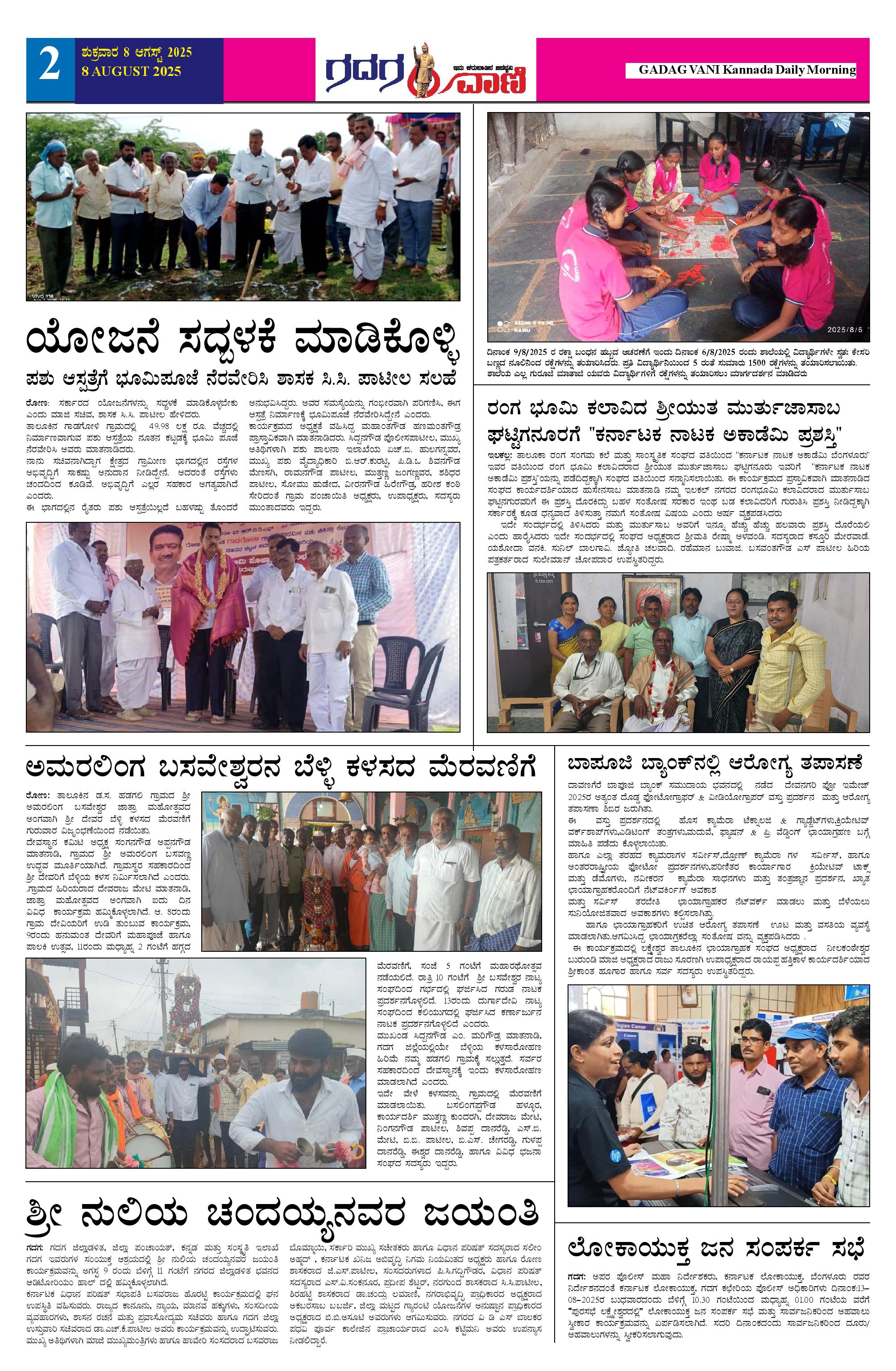 08 AUG 2025 ಗದಗವಾಣಿ Page: 2 August 08, 2025 << First << 2 >> Last >> Page 1Page 2Page 3Page 4Page 5Page 6 × 08 AUG 2025 ಗದಗವಾಣಿ 1234508.08.2025 GADAGVANI PG 06 NEW-page-006 << First << 2 >> Last >> 1234508.08.2025 GADAGVANI PG 06 NEW-page-006 2
