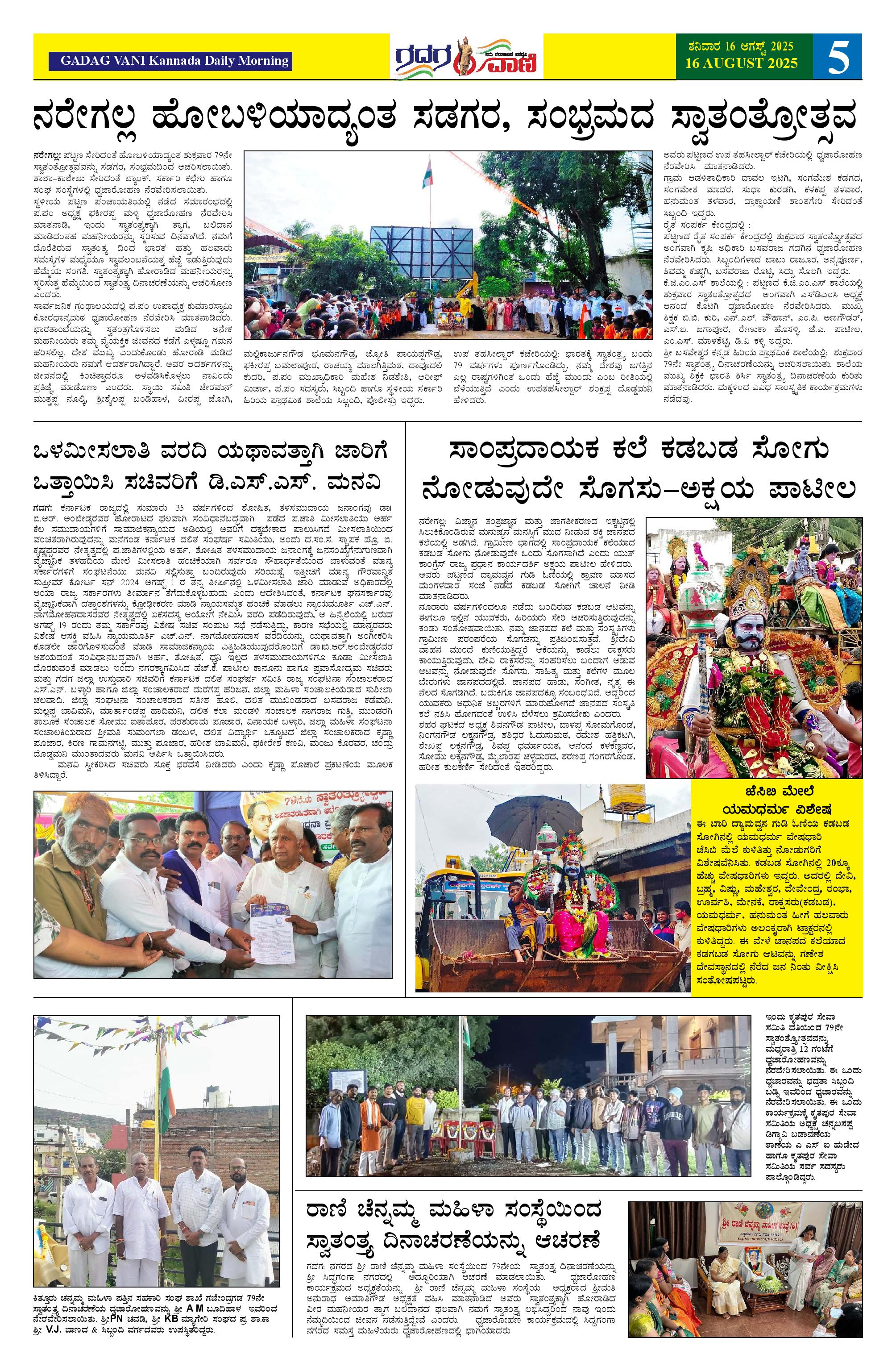 16 AUG 2025 ಗದಗವಾಣಿ Page: 5 August 16, 2025 << First << 5 >> Last >> Page 1Page 2Page 3Page 4Page 5Page 6 × 16 AUG 2025 ಗದಗವಾಣಿ page-1page-2page-3page-4page-5page-6 << First << 5 >> Last >> page-1page-2page-3page-4page-5page-6 page-5
