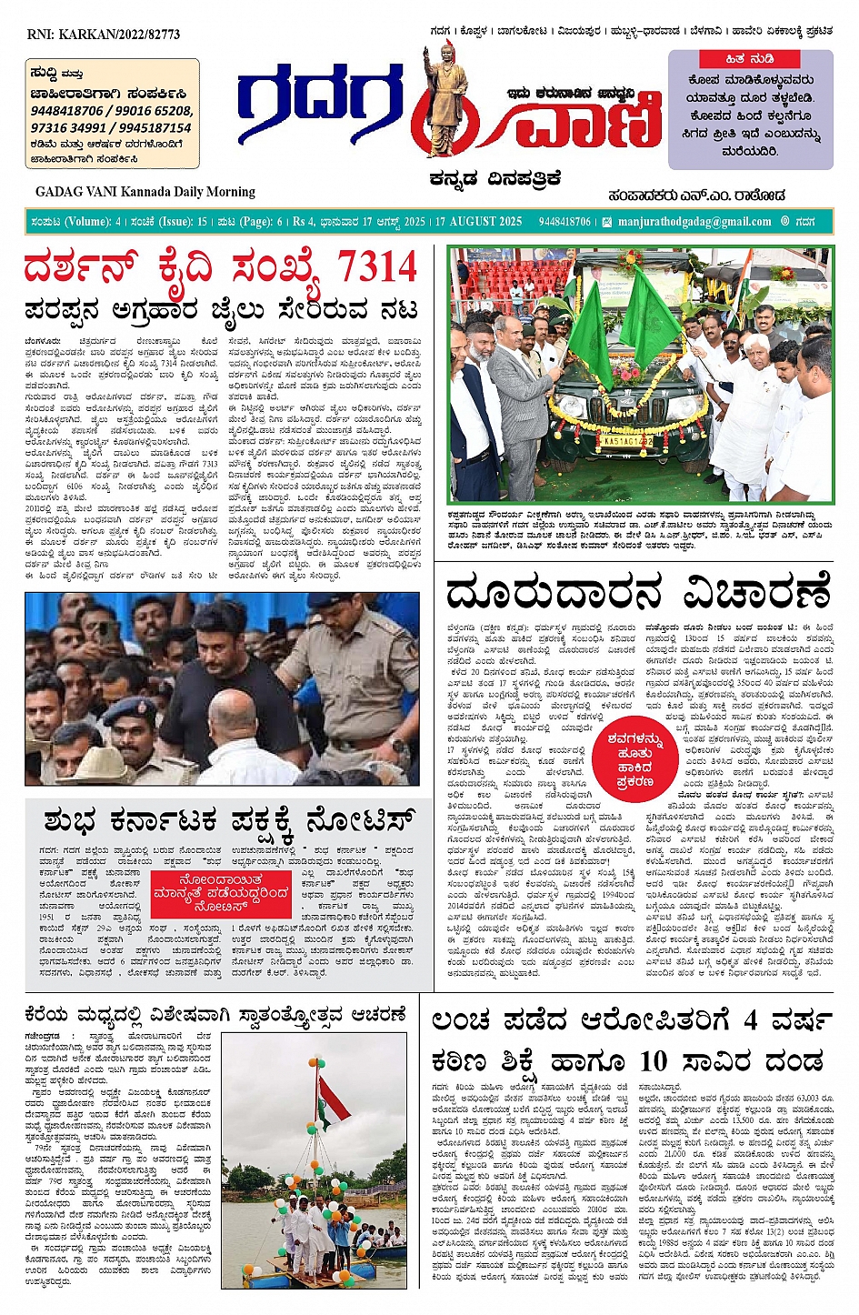 17 AUG 2025 ಗದಗವಾಣಿ August 17, 2025 << First << 1 >> Last >> Page 1Page 2Page 3Page 4 × 17 AUG 2025 ಗದಗವಾಣಿ page-1page-2page-3page-4 << First << 1 >> Last >> page-1page-2page-3page-4 page-1