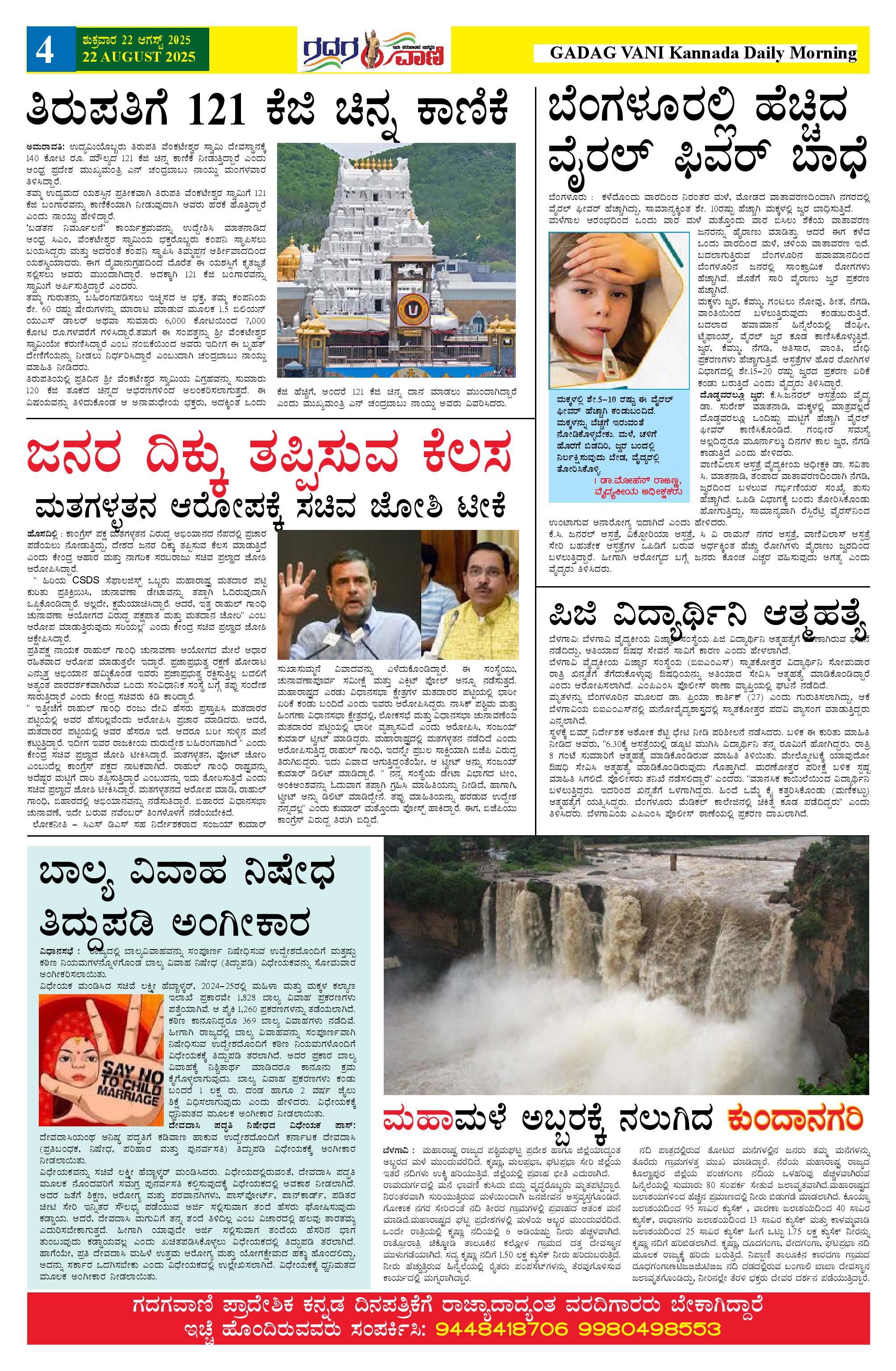 22 AUG 2025 ಗದಗವಾಣಿ Page: 4 August 22, 2025 << First << 4 >> Last >> Page 1Page 2Page 3Page 4Page 5Page 6 × 22 AUG 2025 ಗದಗವಾಣಿ page-1page-2page-3page-4page-5page-6 << First << 4 >> Last >> page-1page-2page-3page-4page-5page-6 page-4