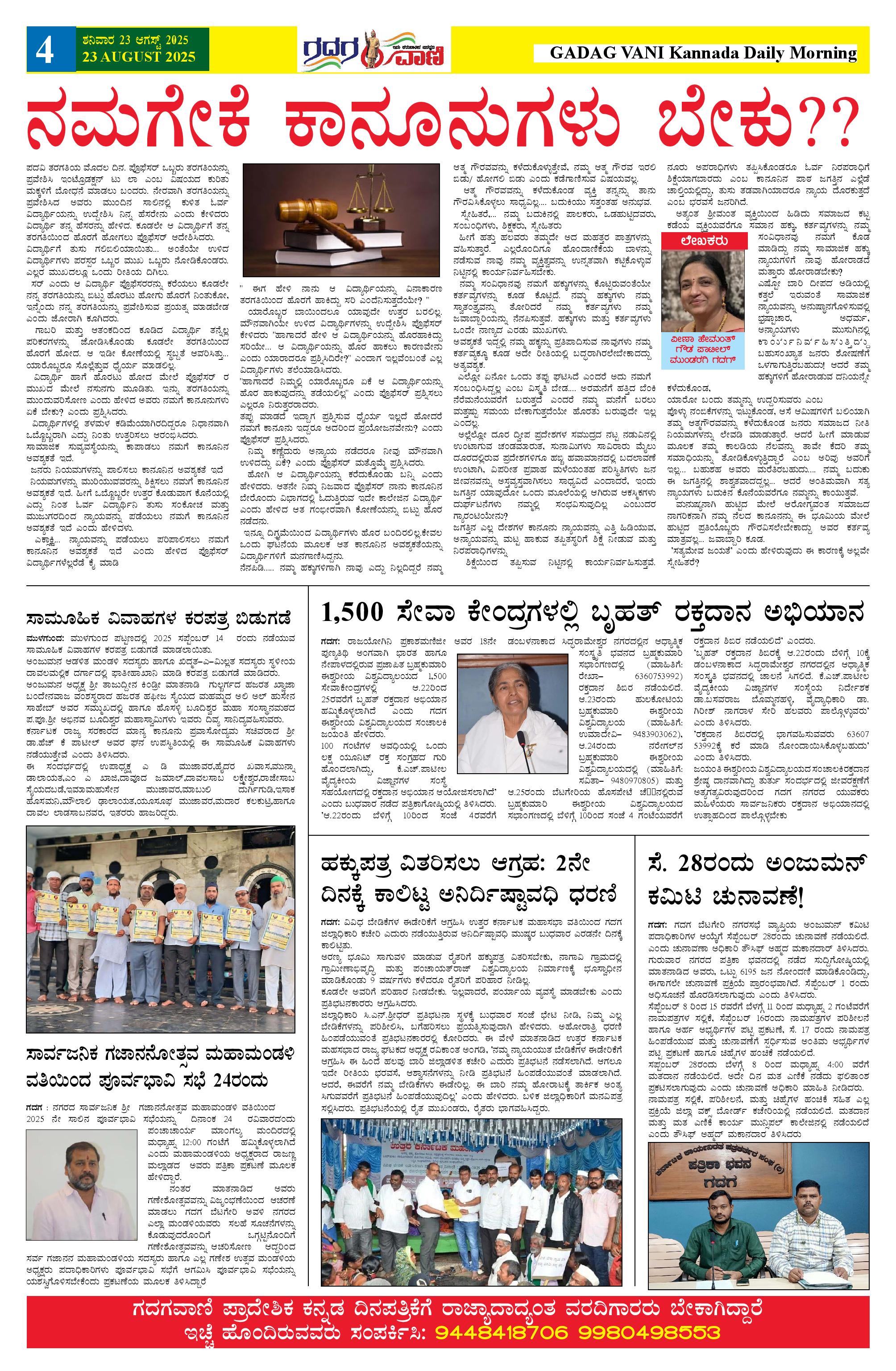 23 AUG 2025 ಗದಗವಾಣಿ Page: 4 August 23, 2025 << First << 4 >> Last >> Page 1Page 2Page 3Page 4Page 5Page 6 × 23 AUG 2025 ಗದಗವಾಣಿ page-1page-2page-3page-4page-5page-6 << First << 4 >> Last >> page-1page-2page-3page-4page-5page-6 page-4