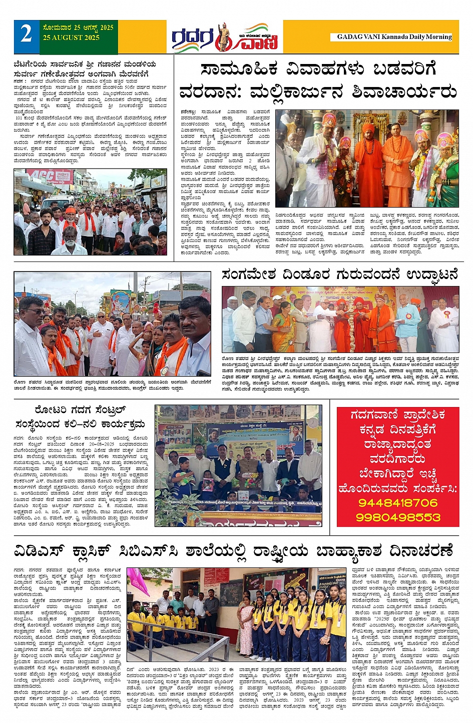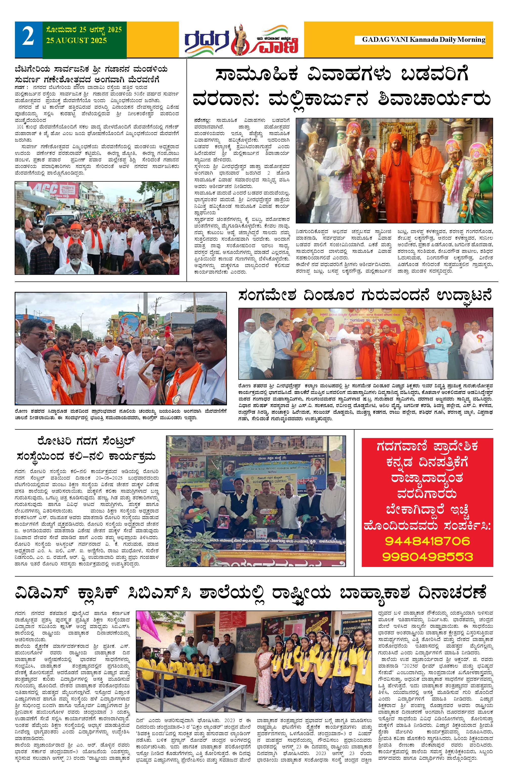 25 AUG 2025 ಗದಗವಾಣಿ Page: 2 August 25, 2025 << First << 2 >> Last >> Page 1Page 2Page 3Page 4 × 25 AUG 2025 ಗದಗವಾಣಿ 1234 << First << 2 >> Last >> 1234 2
