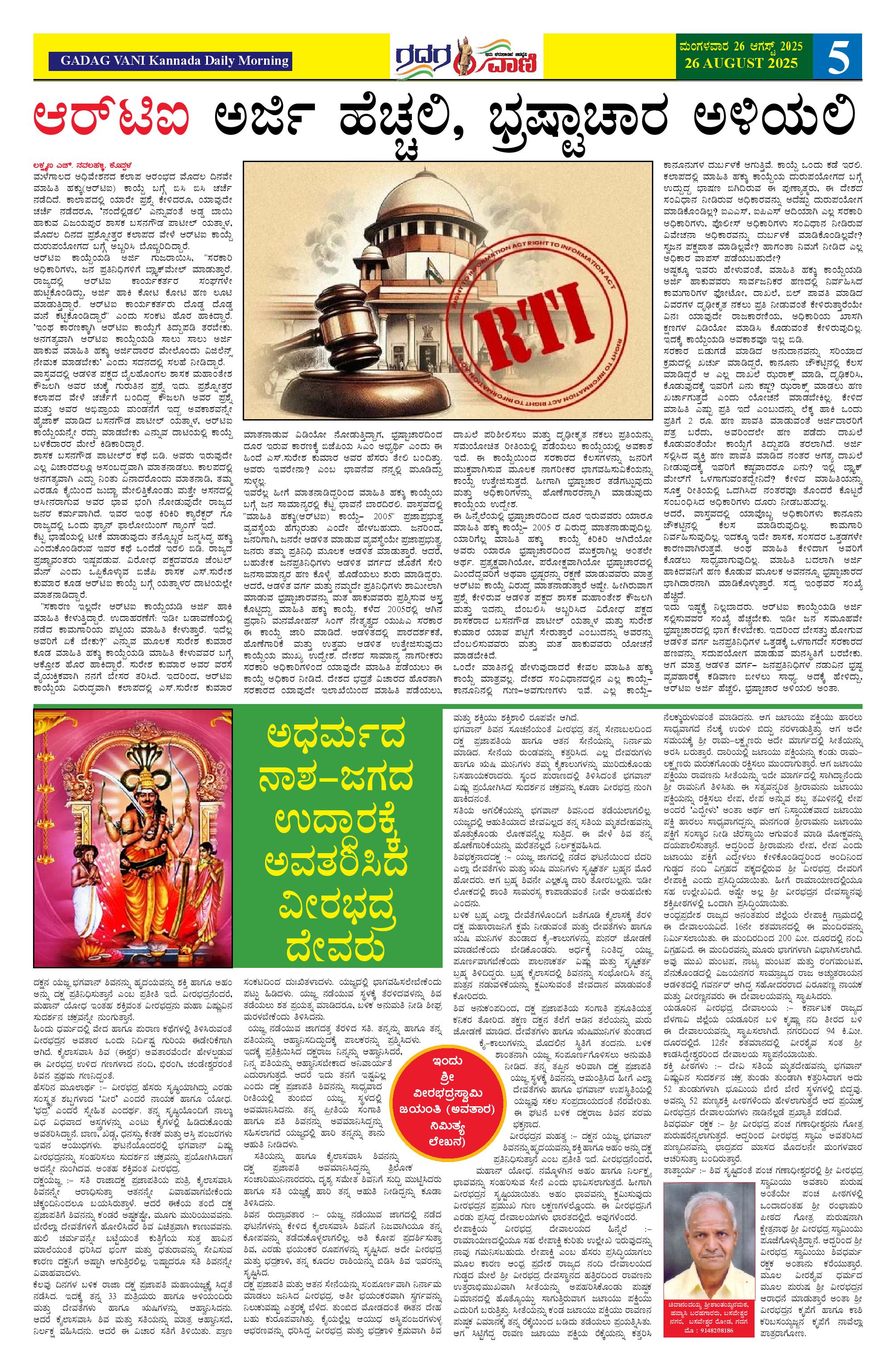 26 AUG 2025 ಗದಗವಾಣಿ Page: 5 August 26, 2025 << First << 5 >> Last >> Page 1Page 2Page 3Page 4Page 5Page 6 × 26 AUG 2025 ಗದಗವಾಣಿ 1234526.08.2025 GADAGVANI PG 06 NEW-page-006 << First << 5 >> Last >> 1234526.08.2025 GADAGVANI PG 06 NEW-page-006 5